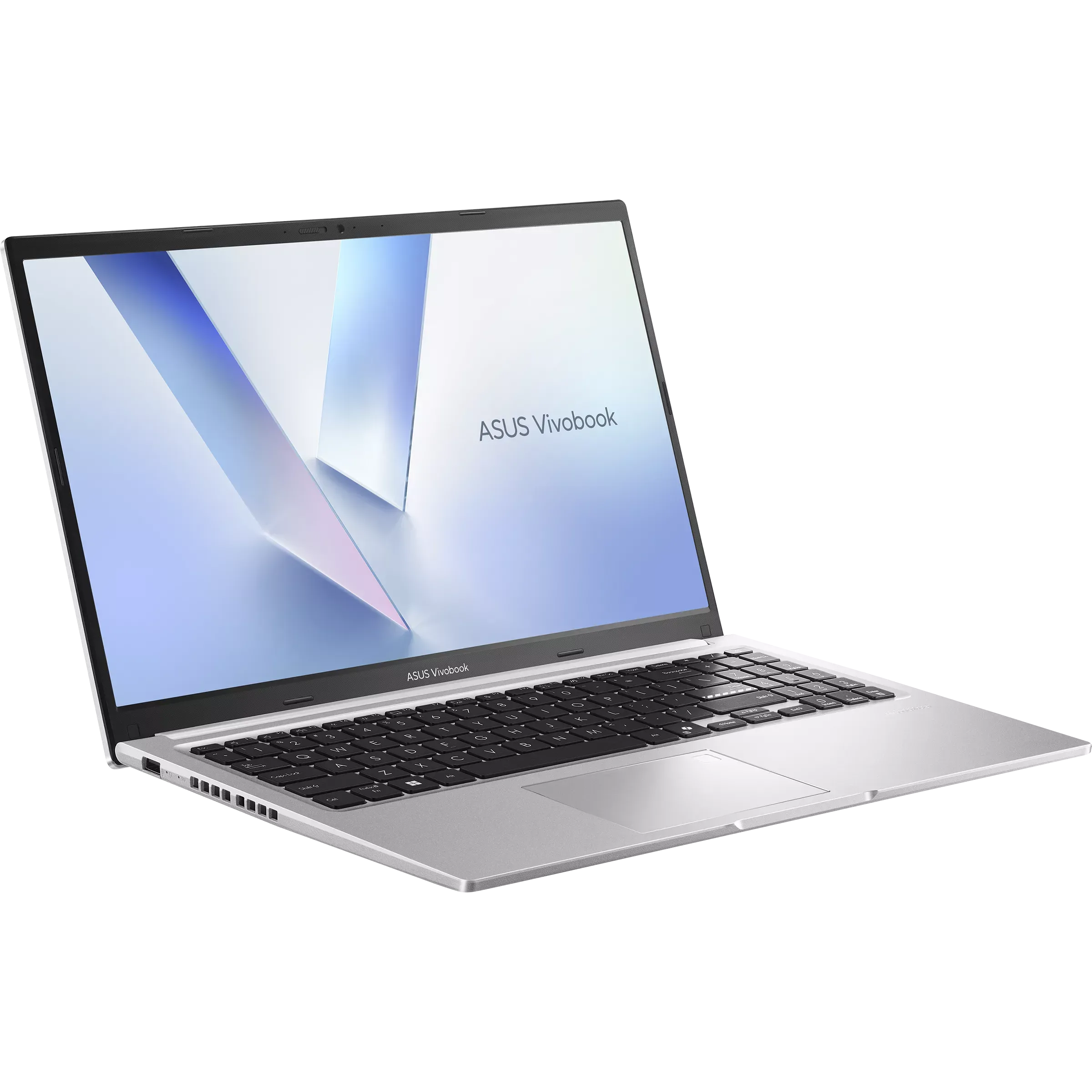 Vivobook 15 opened at 45 degrees and viewed from the front with speed rays graphic.Vivobook 15 opened at 45 degrees and viewed from the front with speed rays graphic.