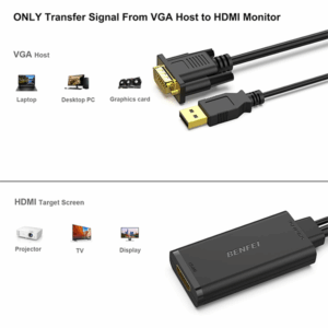 Benfei VGA Male To HDMI Female Adapter + USB-A Male Audio With Gold-Plated Connectors And Support Resolution Up To 1080P@60Hz – Black Colour
