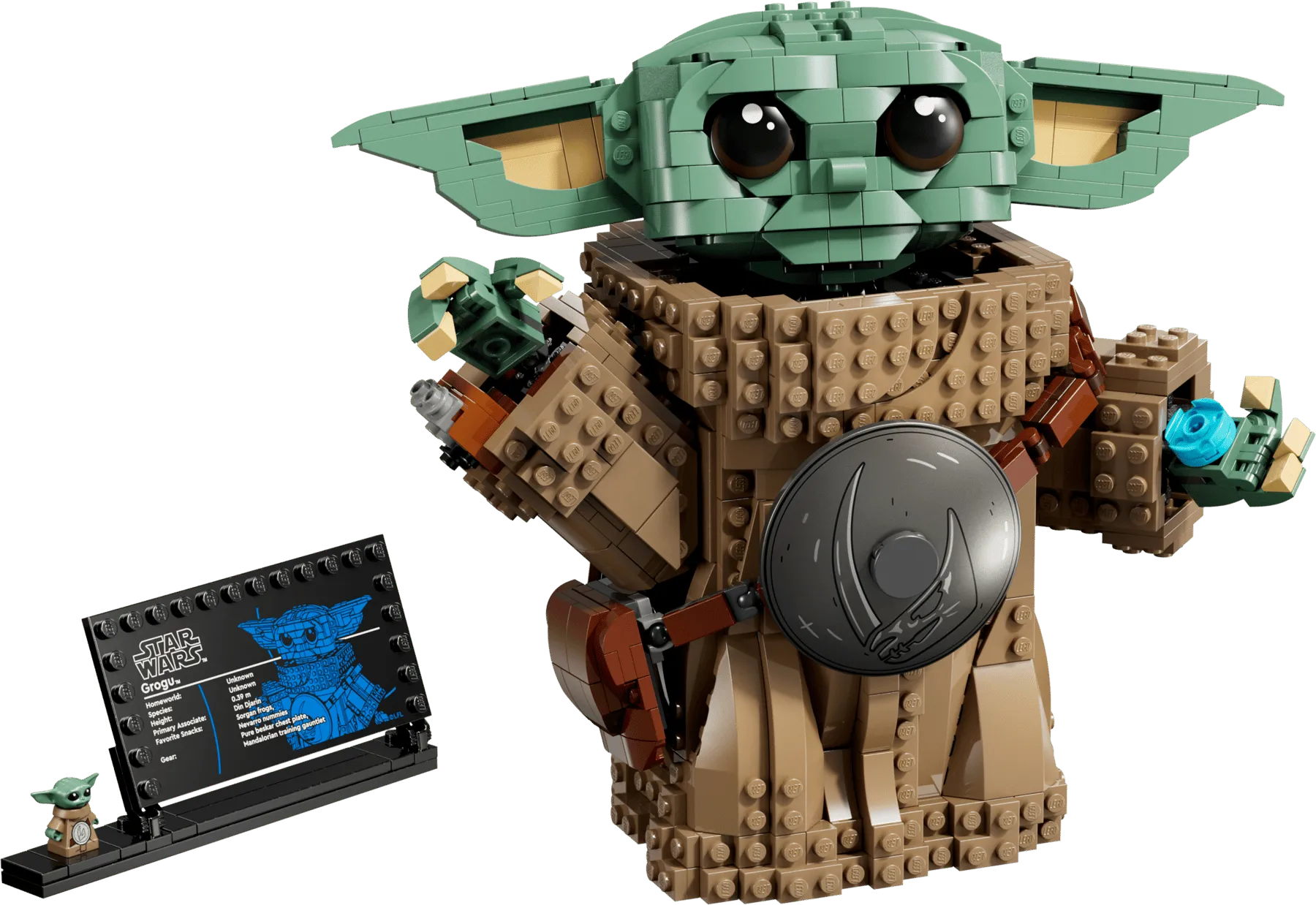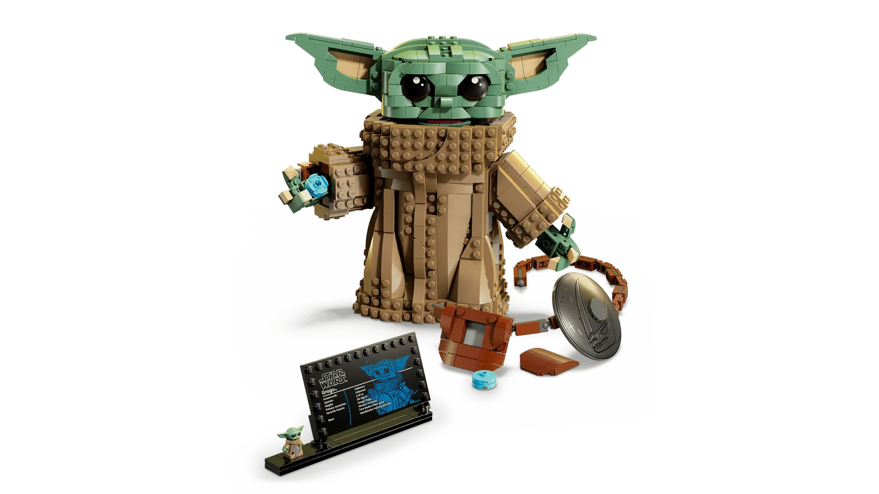 - FANTASY DECOR – Display the main buildable toy model with the Grogu info plaque and standard-size Grogu LEGO® Star Wars™ figure